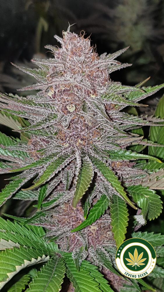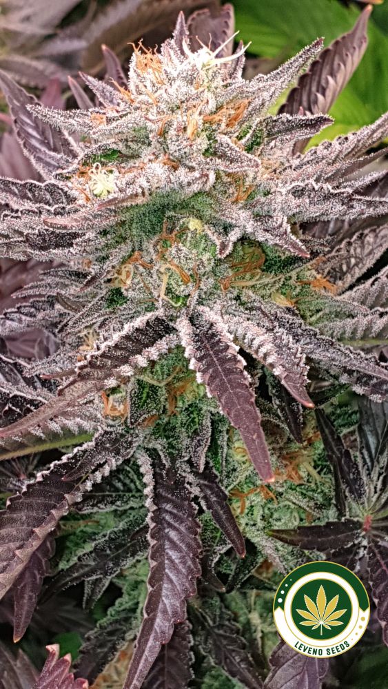 Forbidden Widow is a fast-finisher. It is recommended that growers top plants at the sixth node and also prune the spindly, lower growth by the end of the third week of flowering. The internodal distance is short and plants develop dense buds, especially under LED lights. The purple buds and the bright green foliage become coated with a coat of glistening trichomes. The buds are very hard and compact.